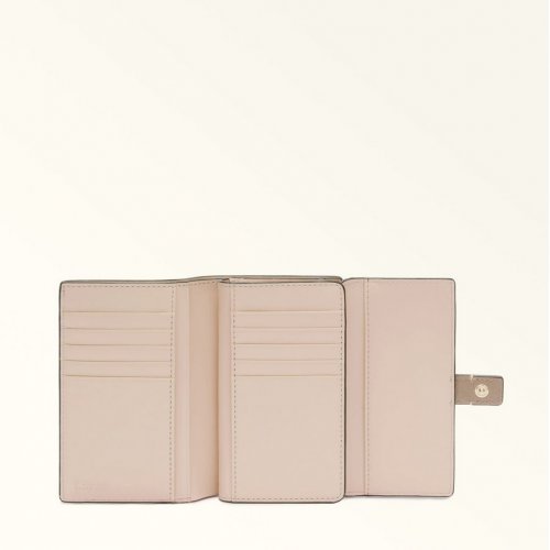 A compact, functional wallet that you can store in any bag. Furla Grazia stands out for its mixture of materials: smooth leather and contrasting grained details for a colour-block effect. The tri-fold design opens up like a book and features a spacious inner coin pocket with zip.