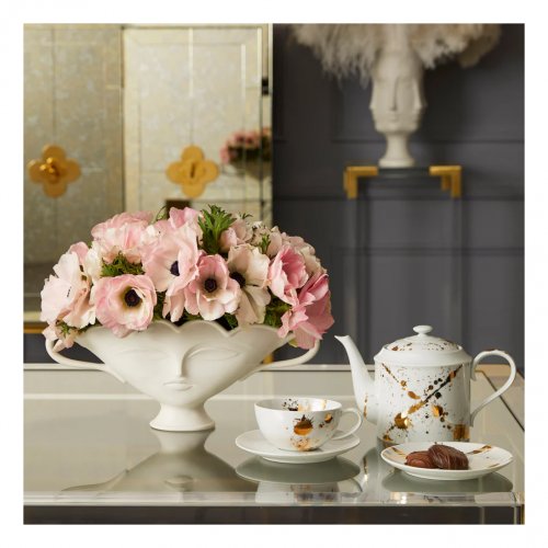 Take your tablescape from so-so to sublime. Crafted from porcelain with a matte finish, our spin on this traditional, flower-friendly vessel features our muse Giuliette's ethereal face (on both front and back) and a lightly scalloped rim. This subtle show-stopper's shallow depth makes it a match for your mantelscape or console.