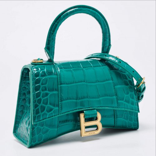 Here’s what makes Balenciaga Green Croc Embossed Leather XS Hourglass Top Handle Bag stand out: